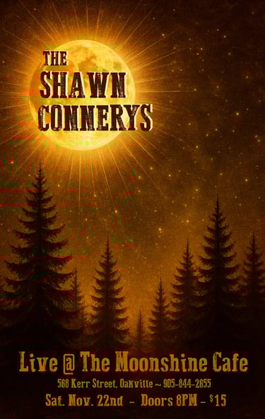 Emerging from the vibrant music scene of the Elora/Fergus area, The Shawn Connerys blend indie-rock energy with alt-folk charm, creating a sound both nostalgic and fresh. Founded in 2004 by Michael Raab and Grant Farrell, the band spent a decade crafting their signature style before debuting Town Secrets in 2014. The album marked the beginning of their journey as purveyors of original melodic storytelling wrapped in upbeat acoustic and electric vibes. In 2018, drummer Ryan Young brought a dynamic new rhythm to the band, followed by bassist Dave Jones in early 2022, solidifying a lineup that’s tighter than ever.